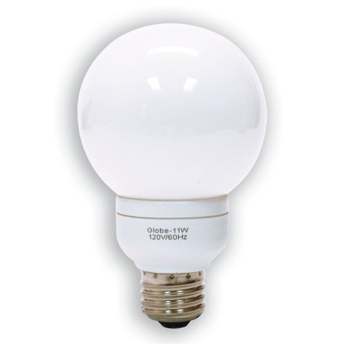 - Base: medium screw (E26); Bulb type: G25; Watts: 11